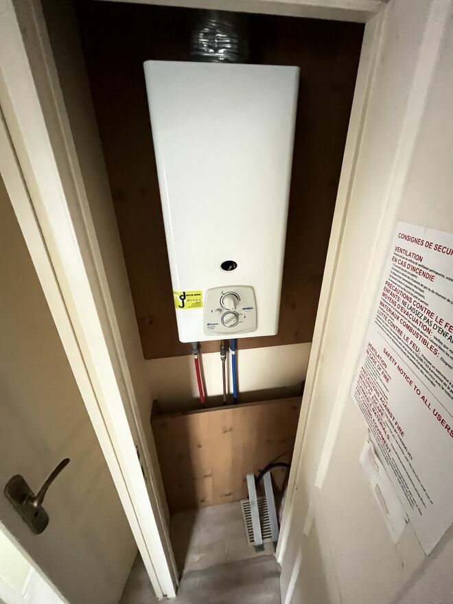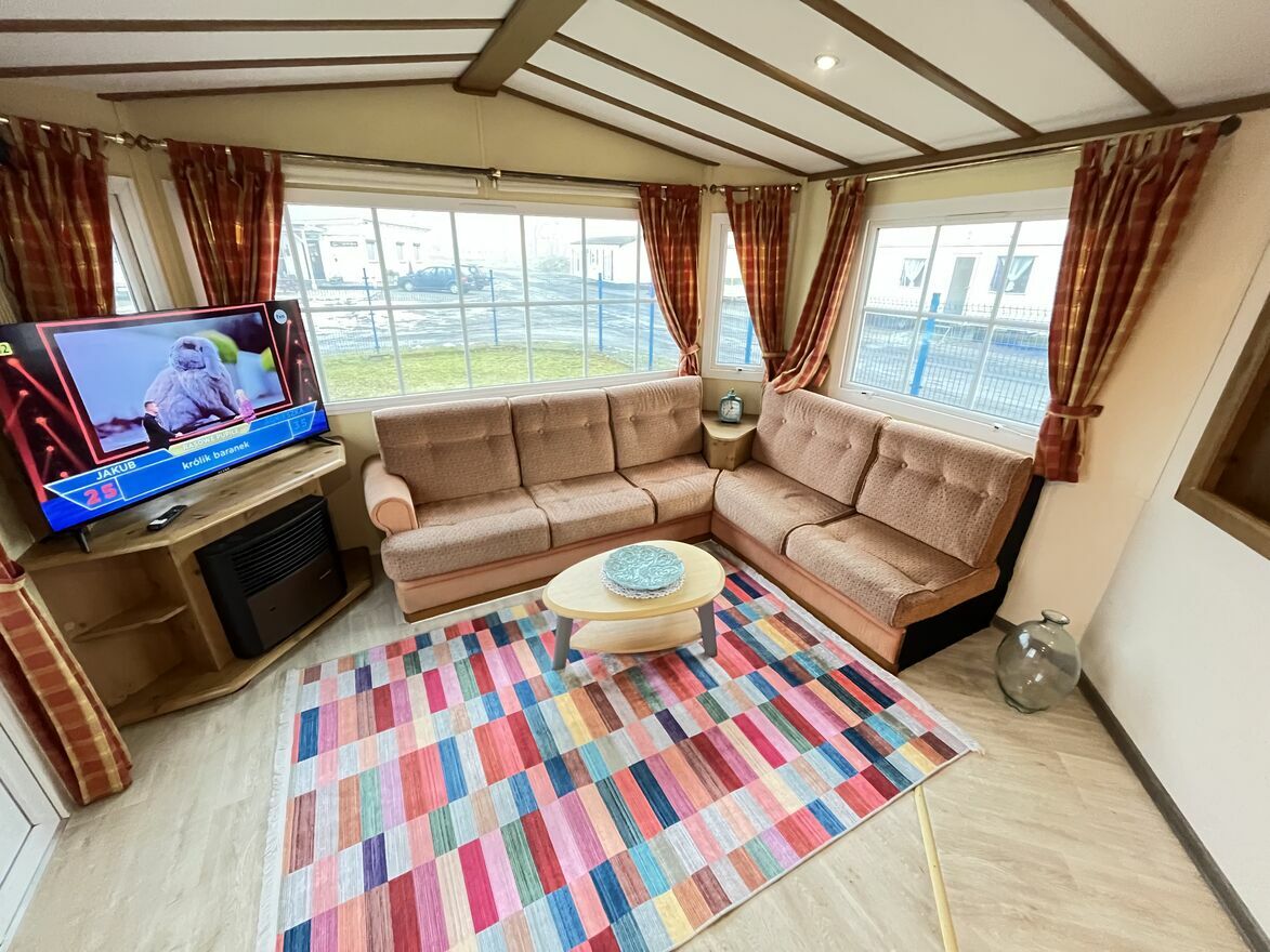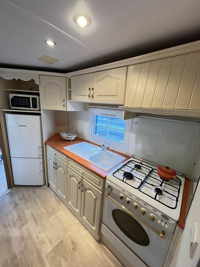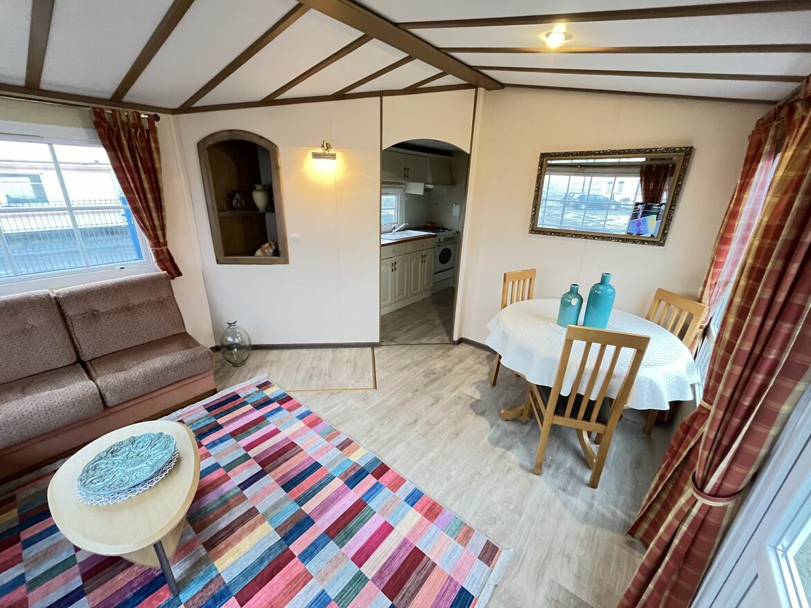 - SALON : kanapa narożnikowa z łóżkiem polowym w środku, stolik, piecyk gazowy do ogrzewania, w części jadalnianej stół oraz krzesła