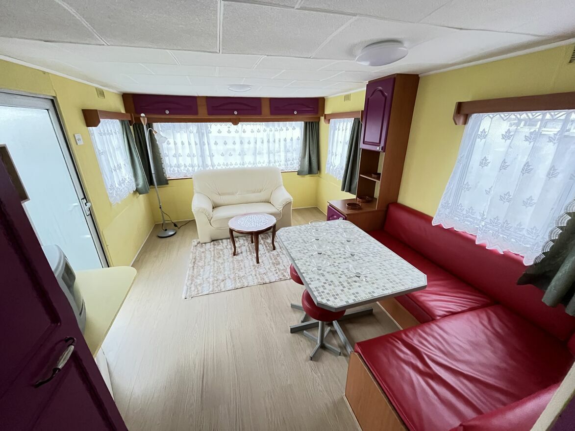 - SALON: Wygodna kanapa, stolik, meble do przechowywania, grzejnik elektryczny, telewizor, dodatkowe wyjście na zewnątrz