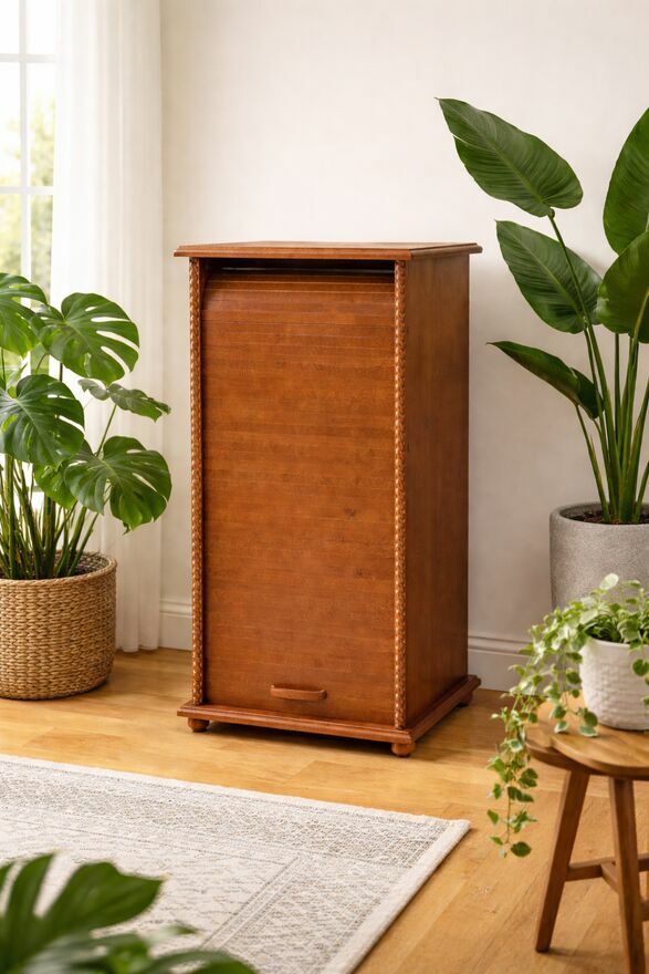 Olchowa szafka/regał RETRO na płyty winylowe, segregatory A4 lub podręczne książki.Pojemna szafka z serii RETRO, wykonana z drewna olchowego. Posiada ona roletę zabezpieczającą przed kurzem - wszystkie płyty są więc schowane. Odległość między półkami wynosi 33 cm. Do szafki możesz włożyć większe i mniejsze płyty winylowe, a na górny wieniec gramofon, dzięki czemu wszystko masz w jednym miejscu. Regał pomieści też dokumenty w formacie A4 i mniejsze. Do wyboru są 2 opcje wysokości mebla.