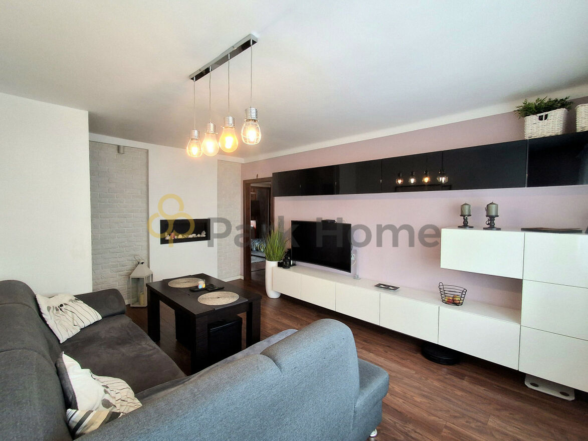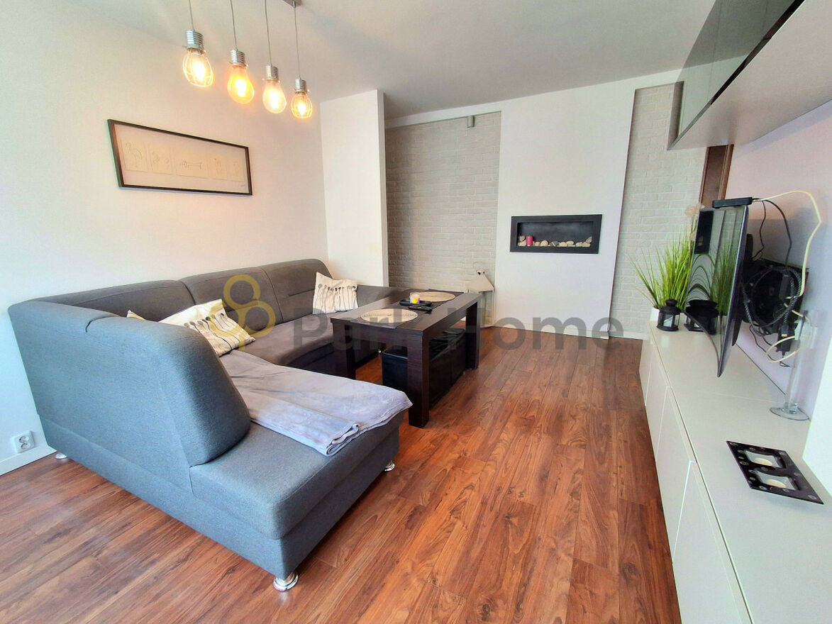 Całość jest jasna i przytulna - duże okna PCV wpuszczają mnóstwo naturalnego światła, co daje poczucie przestrzeni. W mieszkaniu położone są panele na podłodze, a dodatkowym atutem jest kominek na biopaliwo, który tworzy wyjątkowy klimat w salonie.