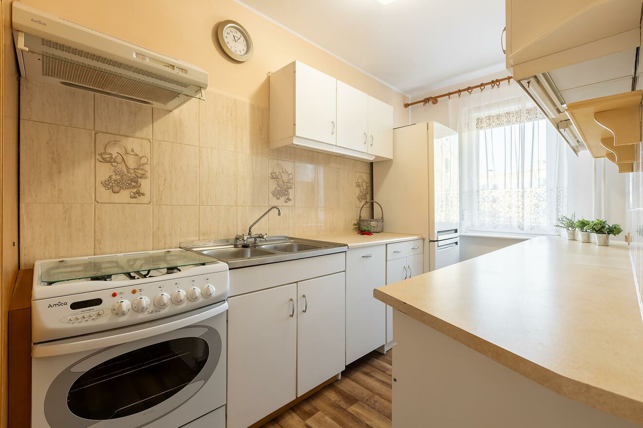 Oddzielna kuchnia z miejscem na stół i rozmowy przy herbacie.